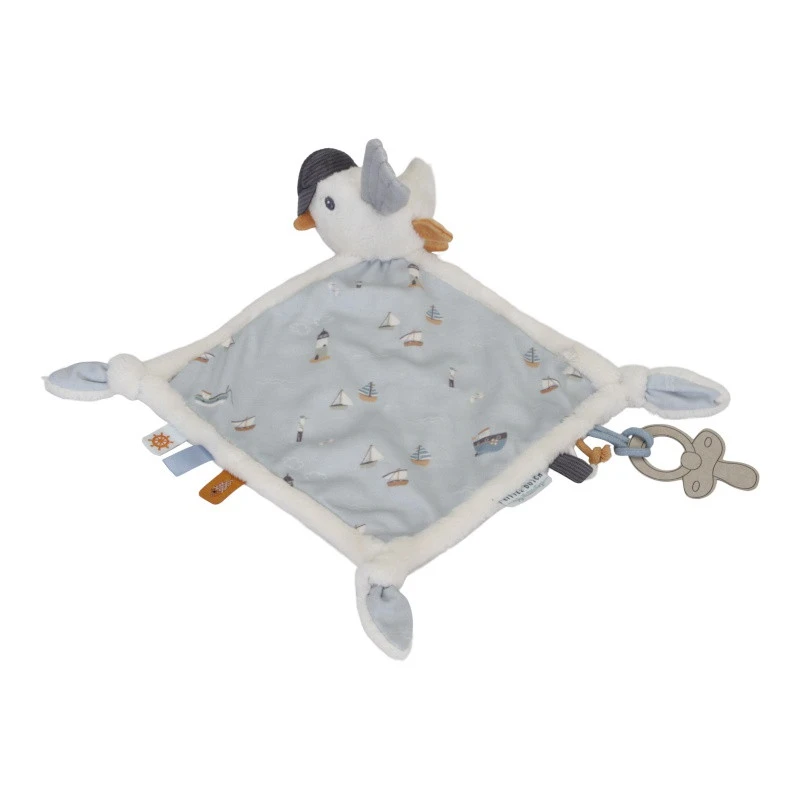 Plat et souple, le doudou Mouette Sailors Bay de Little Dutch se laisse facilement attraper par les petites mains de bébé, et peut alors partager ses jeux, ses câlins, ses chagrins ou ses peurs, de jour comme de nuit, à la maison comme à l’extérieur.