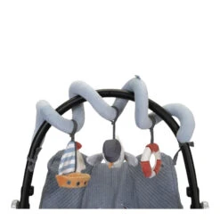 Le doudou carré Sailors Bay transporte avec lui les odeurs familières et réconfortantes de la maison. Il juxtapose un magnifique tissu imprimé de bateaux avec un uni blanc tout doux, il dispose à chaque angle d’un nœud que votre bout de chou va adorer mâchouiller, et il propose également de fines étiquettes tellement agréables à triturer. De plus, une boucle ingénieuse permet d’y accrocher une sucette avec anneau.