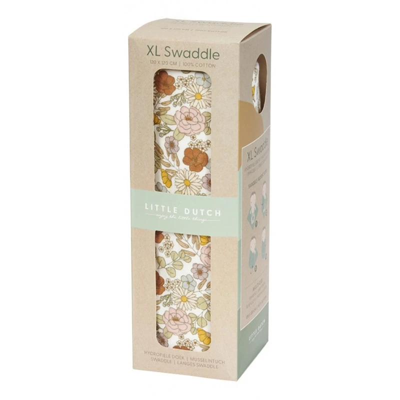 Ce maxi-lange Vintage Little Flowers de Little Dutch vous rendra tellement de service qu’il ne quittera plus l’univers de votre bébé ! Il mesure 120 x 120 cm, et sert à tout : à emmailloter votre nourrisson pour le rassurer, à lui créer un peu d’ombre ou à l’abriter du vent, à le couvrir légèrement en été, à le sécher après le bain, comme bavoir ou linge d’allaitement, en matelas à langer ou tapis de jeu d’appoint…
