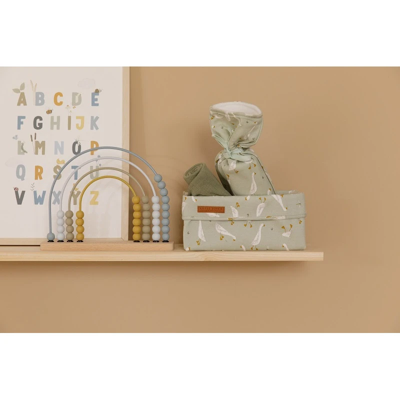 Le grand panier de commode Little Goose de Little Dutch est parsemé sur toute sa surface d’élégantes oies blanches, sur un fond vert tendre. Il offre des finitions soignées, comme le revers coordonné ou la ravissante étiquette signature, en cuir. Il peut être associé aux autres composants de la gamme, notamment la housse de matelas à langer ou la sortie de bain pour créer un univers de toilette élégant et coordonné, mais il peut aussi s’harmoniser avec plein d’autres ambiances, au gré de vos envies.